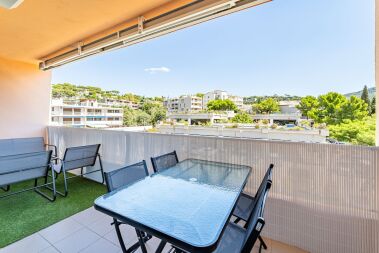 Espace extérieur : La terrasse est meublée avec un salon de jardin et une table extérieure, parfaits pour profiter des repas ou des boissons avec vue.