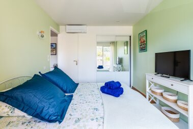 Chambre : Dotée d'un lit double confortable (160x200 cm) pour des nuits reposantes.